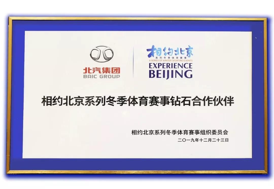On December 23, the release conference for the diamond partners of “Experience Beijing” winter sport events was held in the park of Beijing Organizing Committee for the 2022 Olympic and Paralympic Winter Games, and five enterprises, including BAIC, become the diamond partners of “Experience Beijing” winter sport events. Leaders including Zhang Jiandong, Vice Mayor of Beijing, Executive Vice Chairman of Beijing Organizing Committee for the 2022 Olympic and Paralympic Winter Games and Executive Vice Chairman of the Organizing Committee of “Experience Beijing” winter sport events, and Han Zirong, Full-Time Vice Chairman and Secretary-General of Beijing Organizing Committee for the 2022 Olympic and Paralympic Winter Games and Vice Chairman and Secretary-General of “Experience Beijing” winter sport events attended the conference. Zhang Jiandong awarded representatives of the five enterprises diamond partner nameplates. Xu Heyi, Party Committee Secretary and Board Chairman of BAIC, accepted the nameplates on behalf of the group.