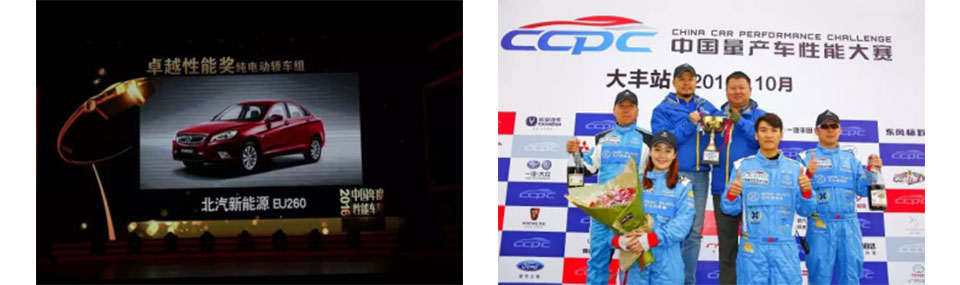 On January 11, 2017, the China Car Performance Challenge (CCPC) Annual Award Ceremony was held in Beijing. BAIC BJEV EU260 cruised to win the 2016 CCPC Award for Electric Car-Excellence Performance Award.