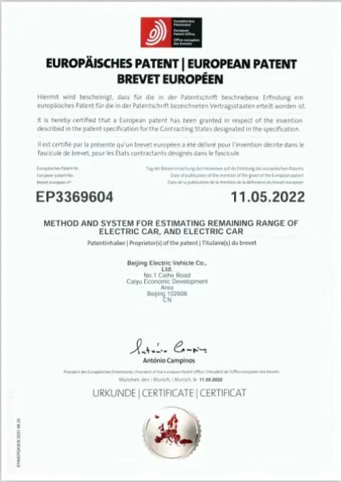 ?首个在电动汽车控制领域的出海专利。2022年,获得国家知识产权局授权的《电动汽车的剩余续航里程估计方法、系统及电动汽车》发明专利,通过欧洲实质性审查并获得欧洲专利局授权,其落地后的形态便是“动态续航”功能,在极狐汽车上早已落地。