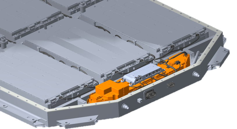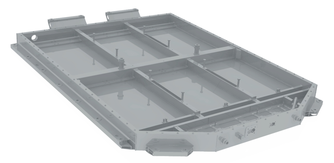 为确保托底安全,电池底部采用高强钢板进行底部防护,能够通过严苛底部球击测试。底部板喷涂有PVC涂层,有效防止石击磕碰损伤。同时,电池底护板由螺栓固定于箱体框架上,遇磕碰损坏后,可单独对底护板进行拆卸更换,节约维修成本。极狐电池采用“干湿分离”的热管理设计,电池箱体底板集成液冷板,即在箱体底板内形成冷却液管道,冷却液即使在极端情况下发生泄漏,也不会泄漏到模组高压区域,确保用电安全。
