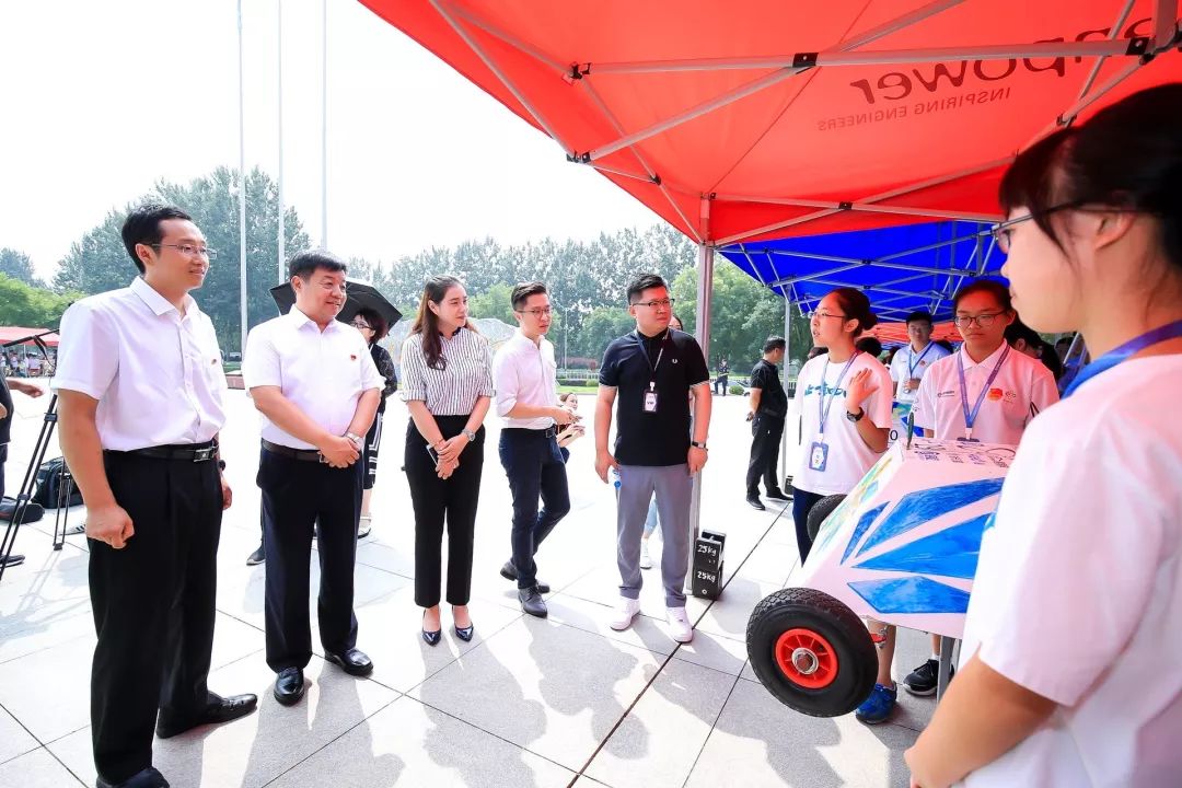 随后,领导及嘉宾前往学生赛车展示区进行观摩。参赛队各展身手,为领导介绍赛车设计原理、展示本团队作品的风采。